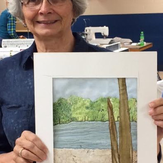 When I teach I always stress using perspective and value correctly. I brought fabrics (which all work in landscapes) and it was their job to layout their picture focusing on perspective and value, and letting the fabric do the work as much as possible. Gladly, everyone created their own picture and didn't need to rely much on my samples. I also teach my stitching techniques for adding even more depth and detail to pictures. There are two downloads available on my website which teach every stitching step for many natural elements. $14.99 each