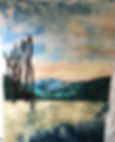 For the water, I chose a different large fabric as a reflection of the sky, knowing that the very dark bottom areas will be covered by soil and plants. The dark area could provide depth behind those elements.